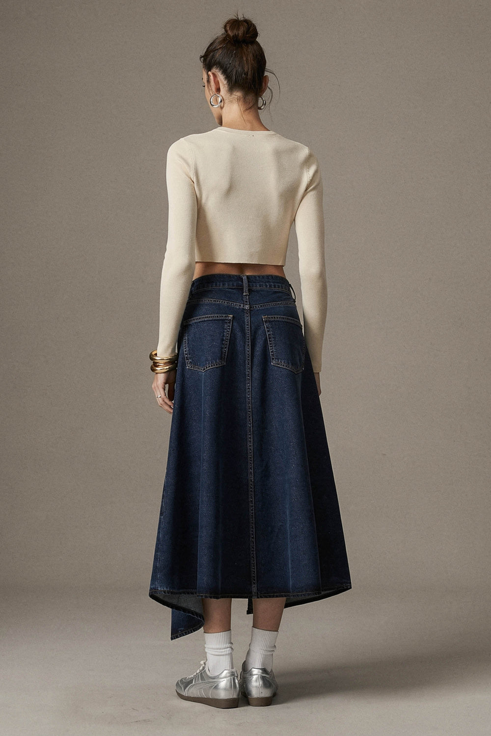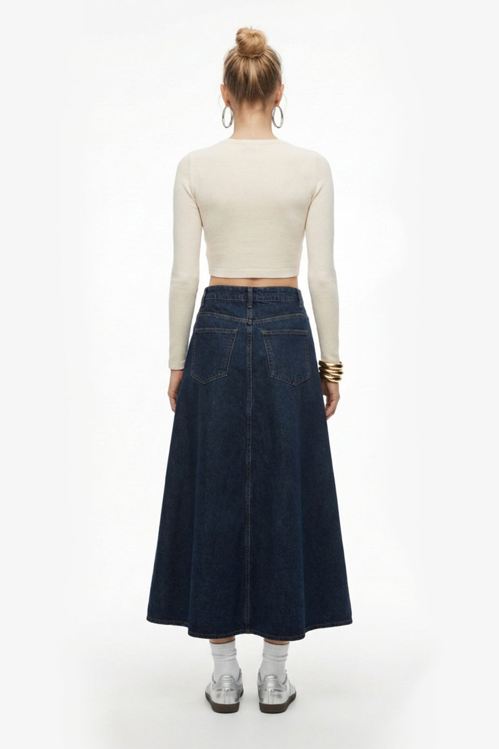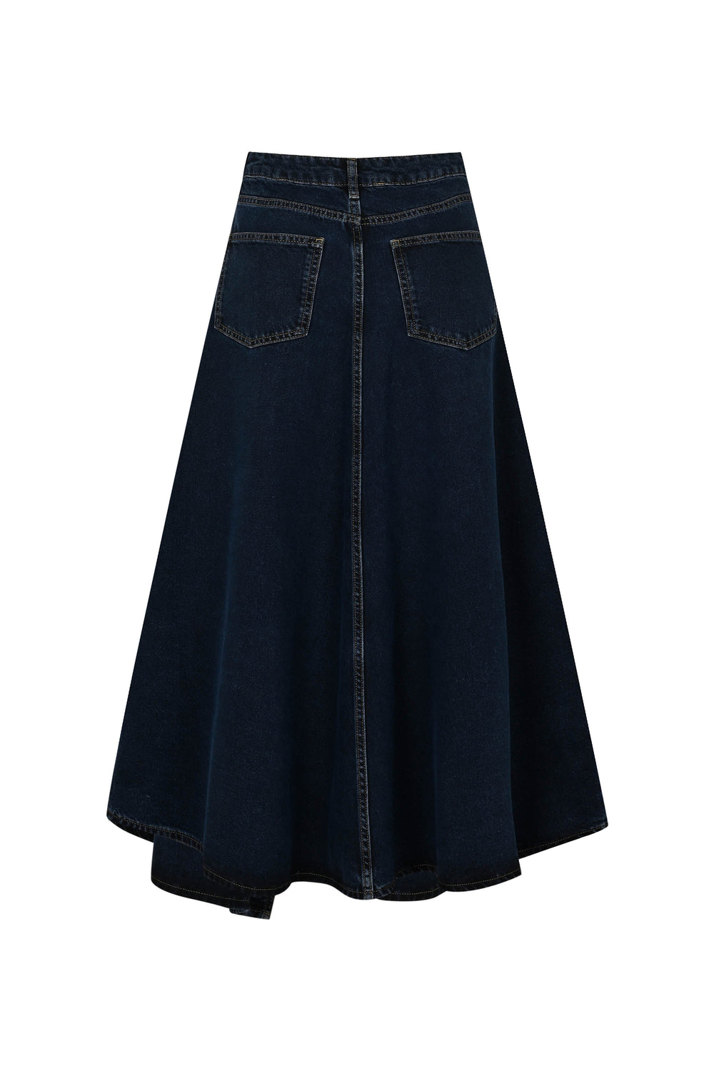 Denim Maxi Skirt with High Slit - Dark Indigo