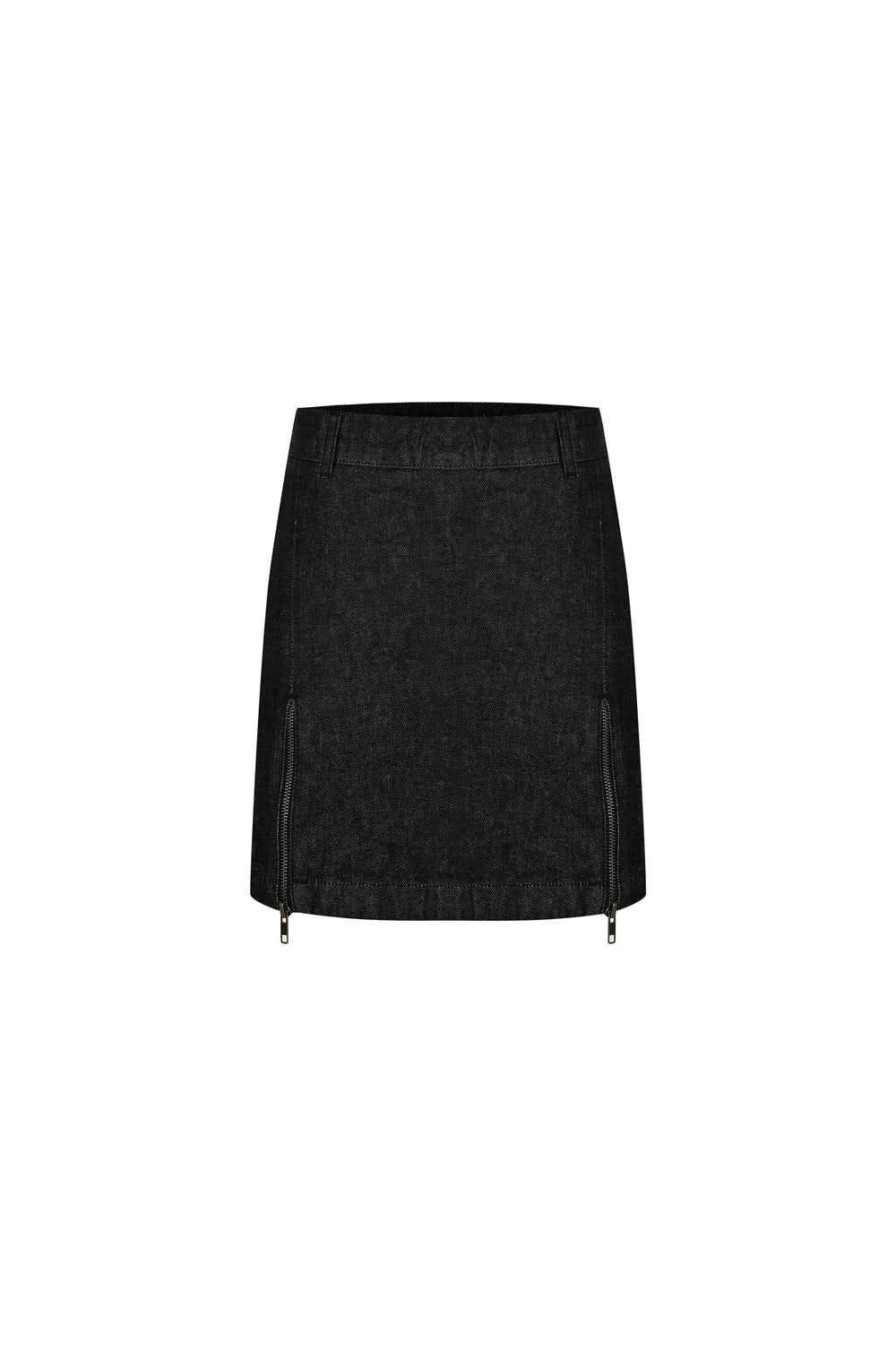 Denim Mini Skirt with Zipper Detail - Black