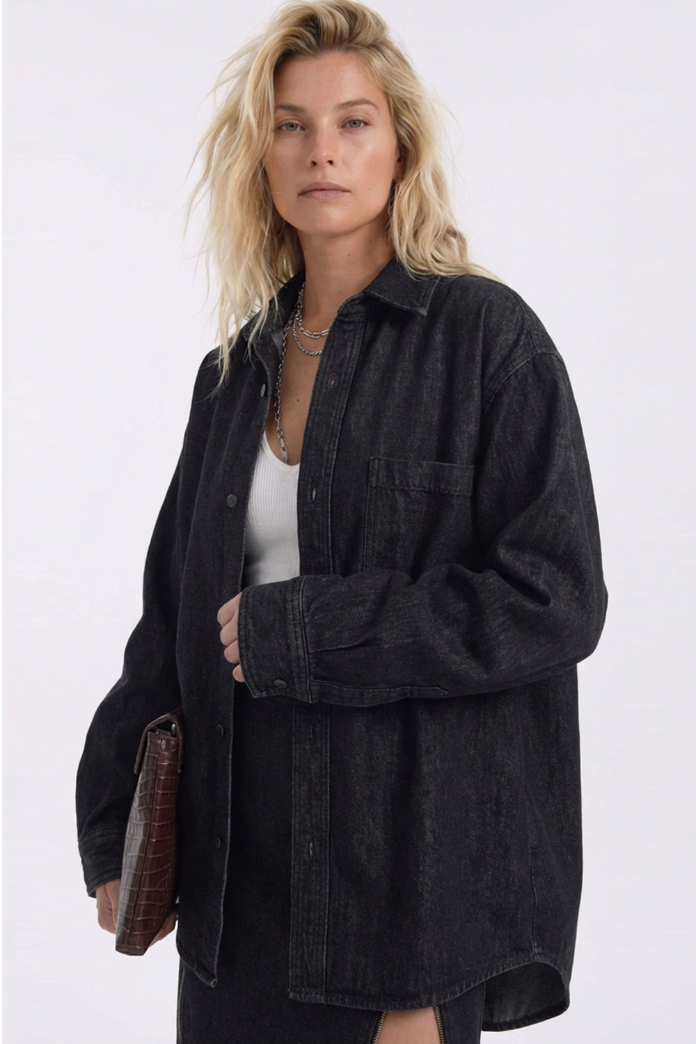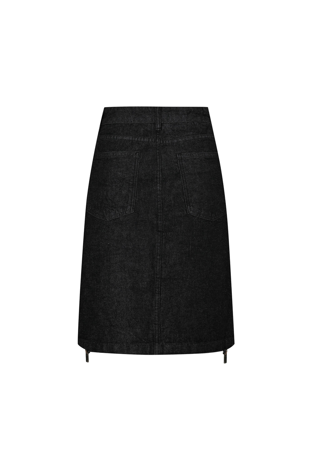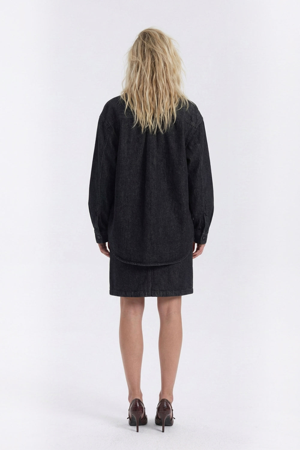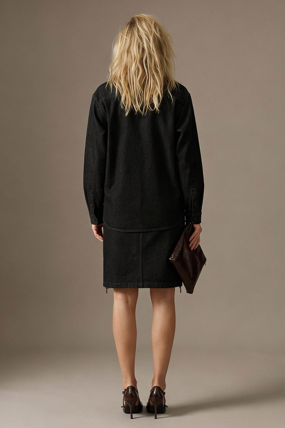 xA refined take on a classic pencil skirt, this denim pencil skirt is tailored in a slim fit with a front slit for ease of movement and subtle edge. Cut from premium denim, it features a mid-rise waist, belt loops, and clean finishes for versatile styling. The refined wash highlights the quality and character of the fabric, creating a polished yet approachable aesthetic. A designer denim skirt for women that pairs effortlessly with blouses, shirts, or outerwear — equally suited for daywear or elevated evening style.