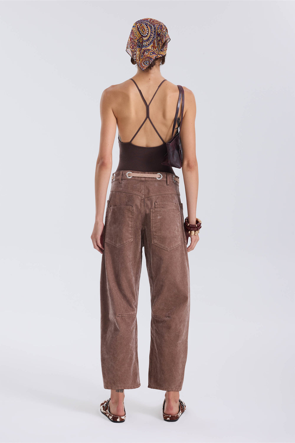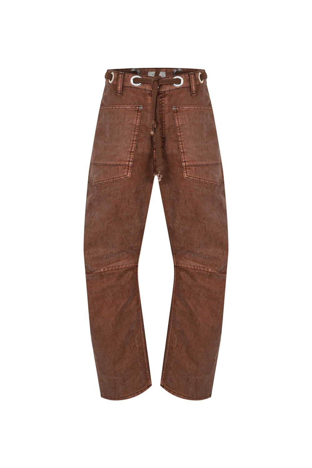 Flocked Pull-On Barrel Jeans – Chestnut