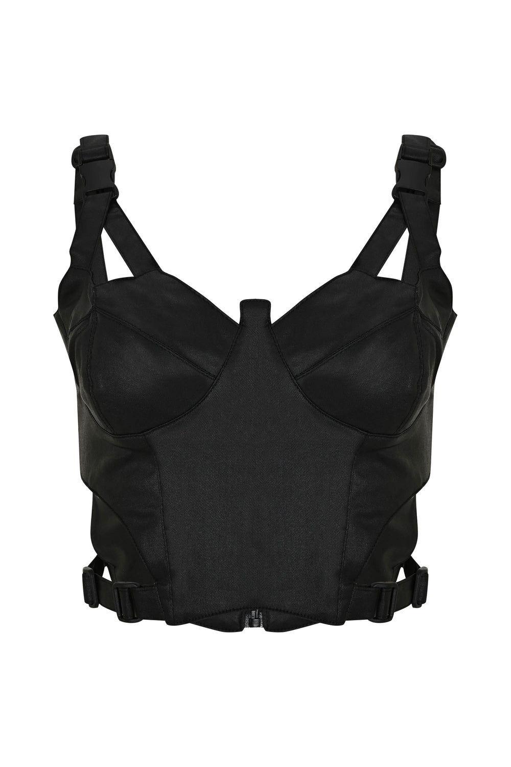 xA bold reinterpretation of the corset silhouette. Crafted in a sculpted fit with adjustable straps and side cut-outs, this structured crop top blends modern edge with refined tailoring. Designed for versatility, it can be styled with high-waisted trousers, skirts, or layered under outerwear. The sleek design highlights its architectural lines and contemporary aesthetic. A designer corset-inspired top for women, perfect for elevating both day and evening looks.